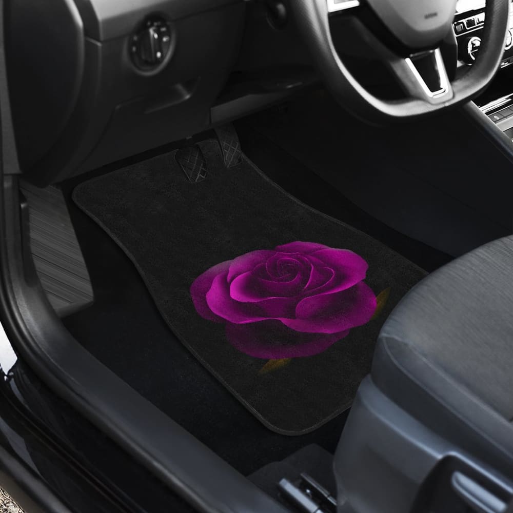 Purple Rose Blooming on Black Background Car Floor Mats