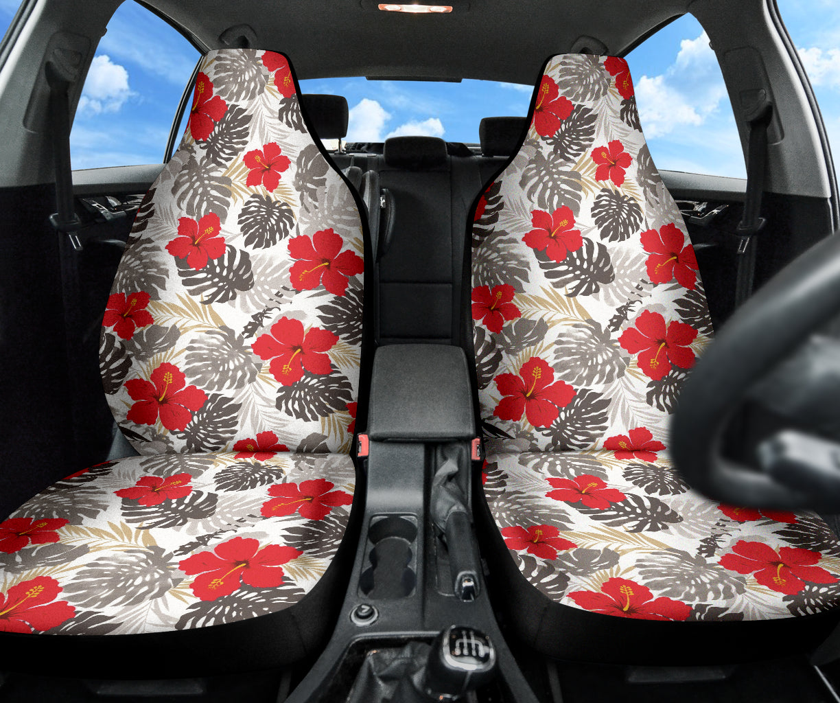 Red Hibiscus Hawaiian Flower Pattern Car Seat Covers