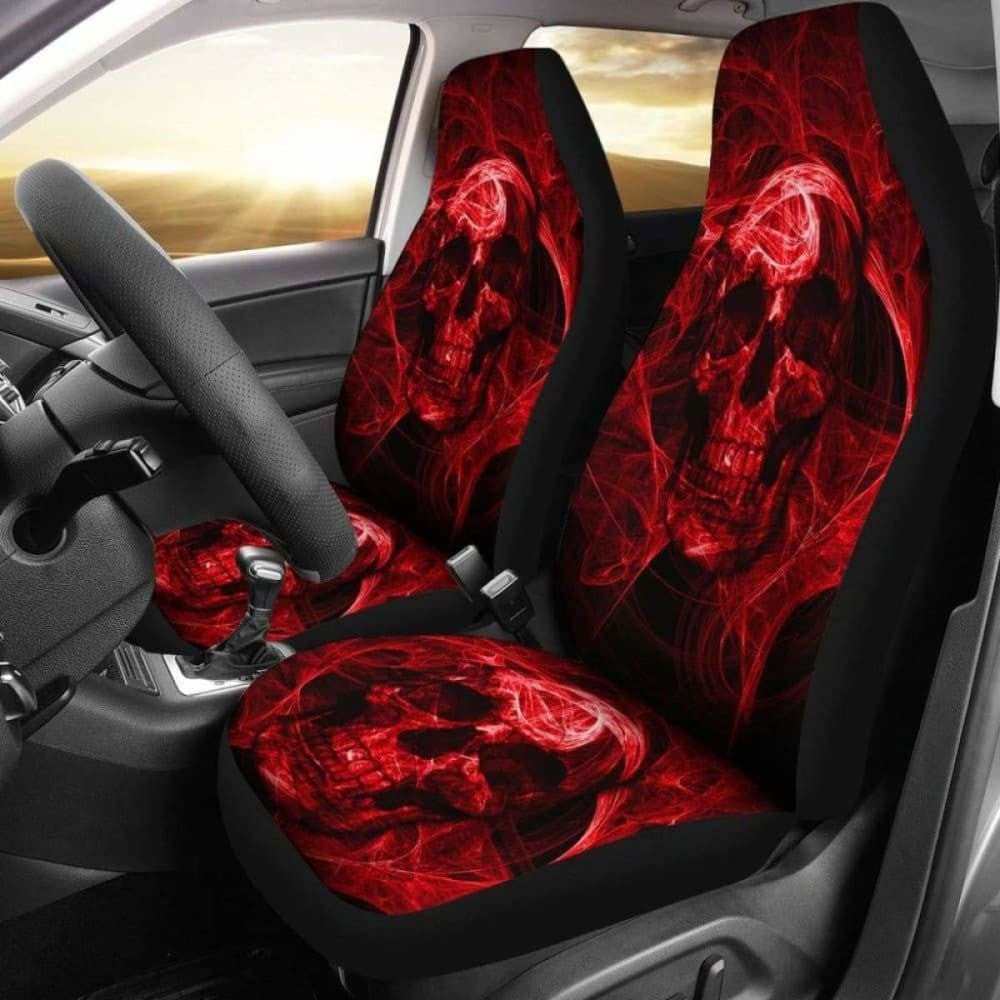 Set Of Flaming Fire Red Skull Car Seat Covers