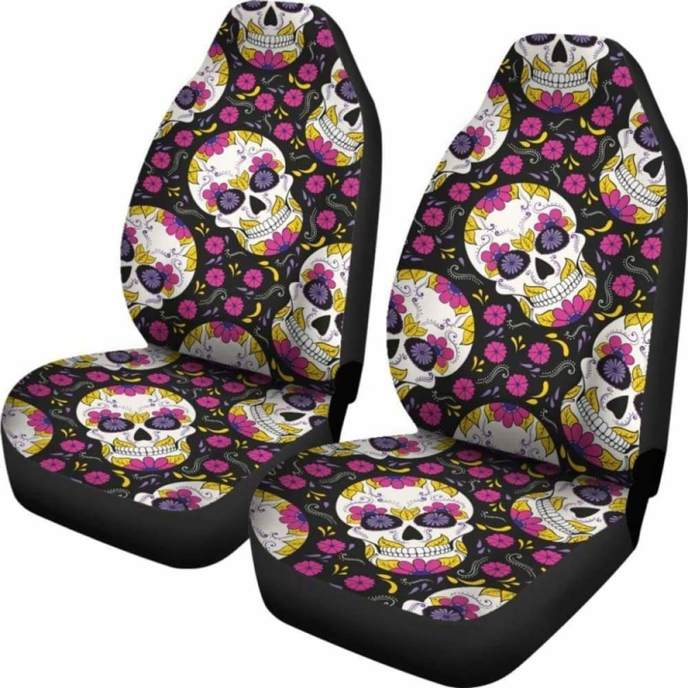 Set Of Sugar Skull Mexican Skull Car Seat Covers