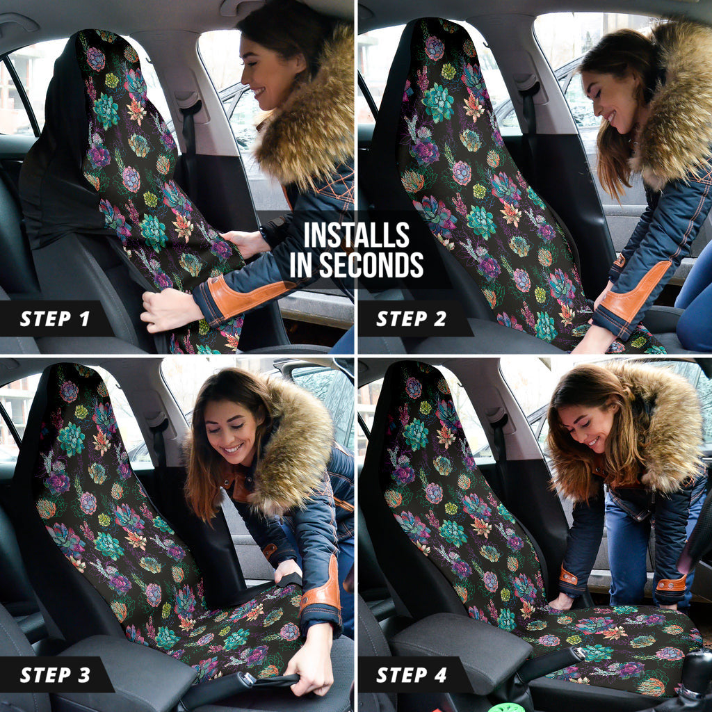 Succulent Colorful Black Background Watercolor Car Seat Covers