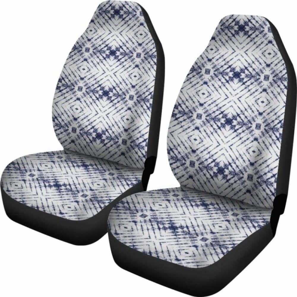 White With Faded Grungy Navy Blue Tie Dye Pattern Car Seat Covers